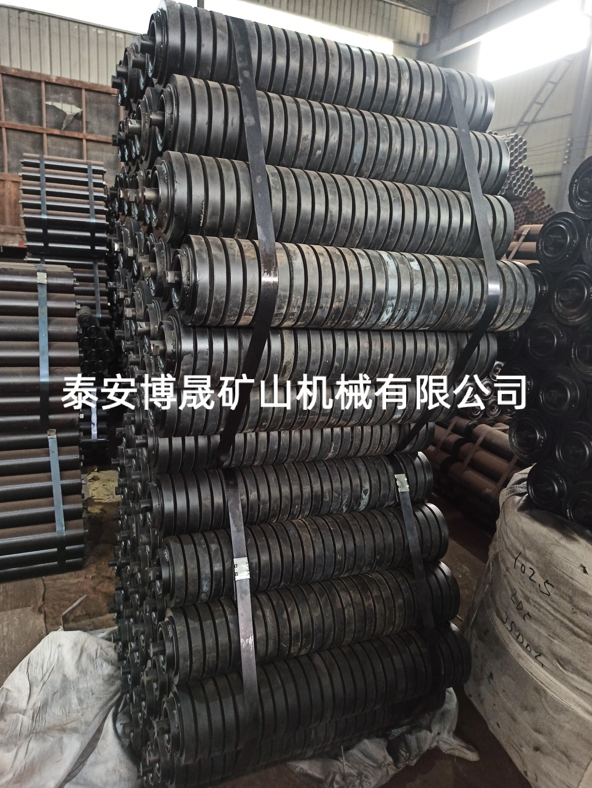 緩沖托輥安裝在輸送機受料段的下方,減小落料時物料對輸送帶的沖擊,以延長輸送帶的使用壽命.緩沖托輥的間距一般100-600毫米。